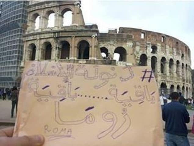 Otras fotos de señales incluyen una en el Coliseo de Roma, con un cartel que decía, "El EIIS permanecerá... permanecerá... Roma".[11]