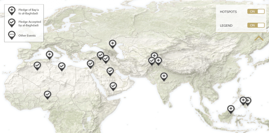 Por su parte, el Estado Islámico – o Daesh, si utilizamos el acrónimo en árabe – ha ido acumulando desde junio de 2014 peticiones de alianzas o bay’a de numerosos grupos repartidos desde Argelia hasta Filipinas. Entre ellas, cabe destacar la enviada a través de un mensaje de audio el 7 de marzo de 2015 por el grupo terrorista nigeriano Boko Haram (BH), en la que juraba lealtad al Califa y ofrecía esta bay’a al EI. Unos días más tarde, el 12 de marzo, al-Baghdadi aceptaba el ofrecimiento y llamaba a los yihadistas de la región a unirse a BH.