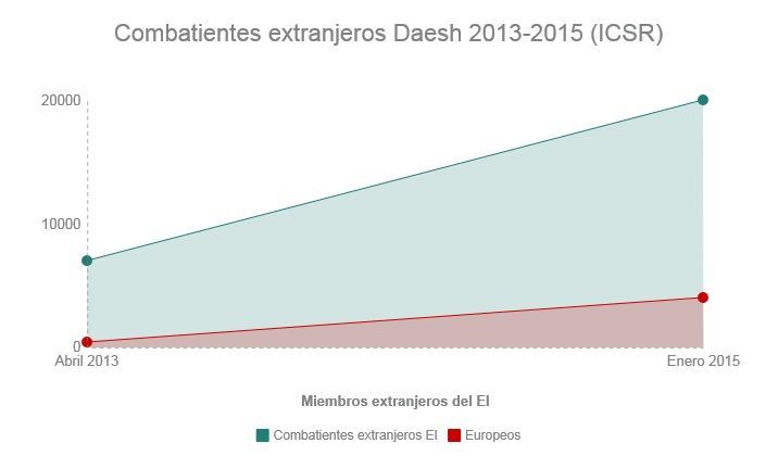 Desde los ataques del 11 de Septiembre, en Europa y Estados Unidos, el terrorismo se encuentra en una continua evolución y tiende a adaptarse a las políticas antiterroristas, mientras que en Oriente Medio actualmente ocurre el caso contrario. Por ello, el contraterrorismo deberá acondicionarse y tomar en cuenta todos los factores involucrados en el conflicto jihadista, esto incluye las diferentes caras de la mujer en el terrorismo islámico, mayoritariamente representado por Al Qa´ida, Boko Haram y del autoproclamado Estado Islámico (EI). Oriente Medio y el Norte de África (MENA) sobrepasan a Afganistán y el Sudeste Asiático, convirtiéndose así en la región más violenta del mundo; Europa mantiene su posición como la región más pacífica, según el Índice de Paz Mundial. Por ello son destacables los datos migratorios recogidos por el Centro de Estudios sobre Radicalización y Violencia Política (ICSR) y el Instituto para el Dialogo Estratégico (ISD), que reflejan el aumento de mujeres migrando hacia la región. En estos datos se cifran a más de 550 mujeres procedentes de Europa actualmente habitando en territorio controlado por el Daesh, cuya edad oscila entre quince y treinta años e integran el 13,7% sobre un total de 4.000 europeos ya en la sociedad creada por el EI mantenida por más de 20.000 combatientes extranjeros.