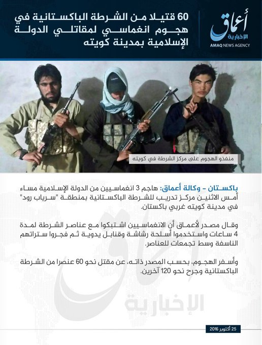 Seguir Andrés Ortiz Moyano @andresOrtMoy El #Daesh, a través de #Amaq, reivindica el atentado suicida de #Quetta. ¿Cuántos años tiene el terrorista de la derecha, por Dios? 03:27 - 25 oct 2016 Retweets me gusta
