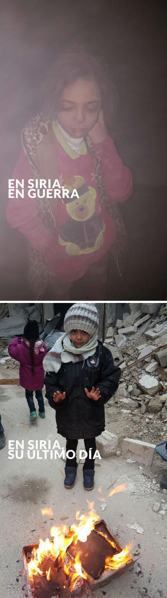 “La guerra y los enfrentamientos es lo único que ha conocido desde que nació. Suele mostrarse ausente y distraída. Poder dormir cuatro horas seguidas sin que les despierten los bombardeos se ha convertido en un milagro. A la niña le gustaría poder salir de la casa e ir a la escuela, pero lo único que puede hacer es quedarse en casa y pintar y jugar con los vecinos”, dijo la madre en la entrevista antes de que salieran de Alepo.