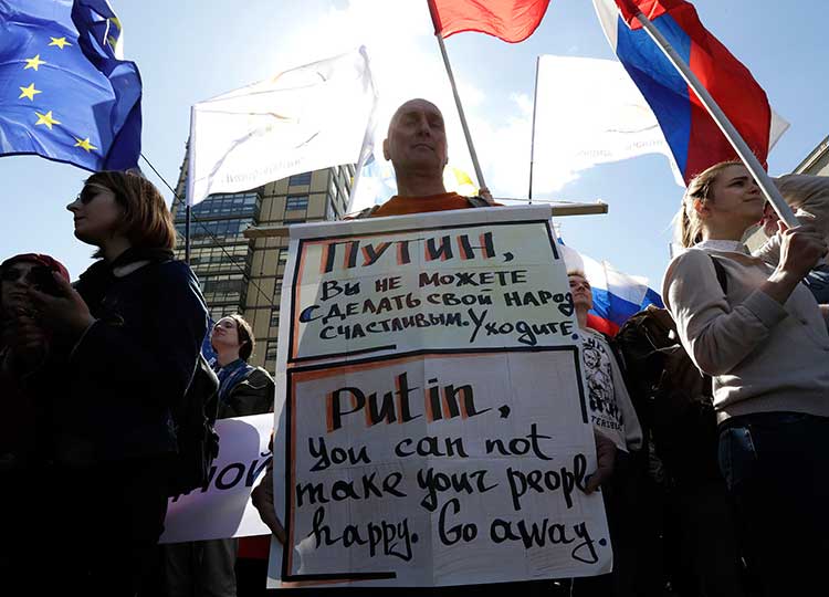 "¡Por un Gobierno honesto!", "¡Por una Rusia sin Putin!", fueron los lemas de la protesta del 6 de mayo de 2012, que congregó a decenas de miles de personas.