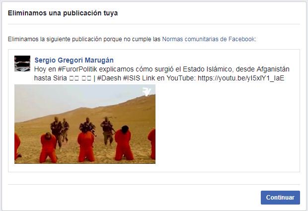 1. Facebook nos ha censurado el vídeo en el que explicamos el origen del ISIS. El vídeo tenía más de 450.000 visitas. ➡️