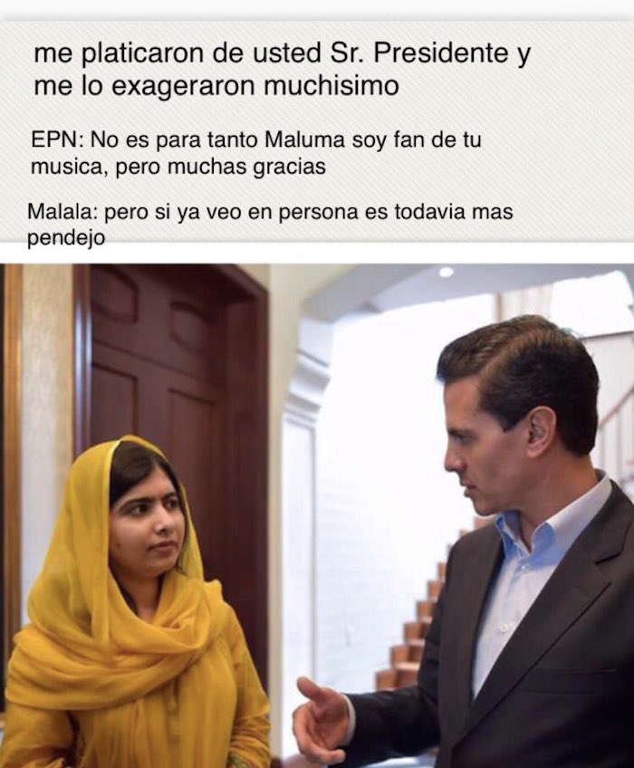 Ciudad de México, 1 de septiembre (SinEmbargo).- La reunión entre Enrique Peña Nieto, Presidente de México, y la paquistaní Malala Yousafsai, defensora del derecho universal a la educación de las niñas, provocó memes, chistes y burlas en las redes sociales.
