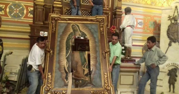 Una mujer destruye una imagen de la virgen de Guadalupe en la Catedral de Tampico