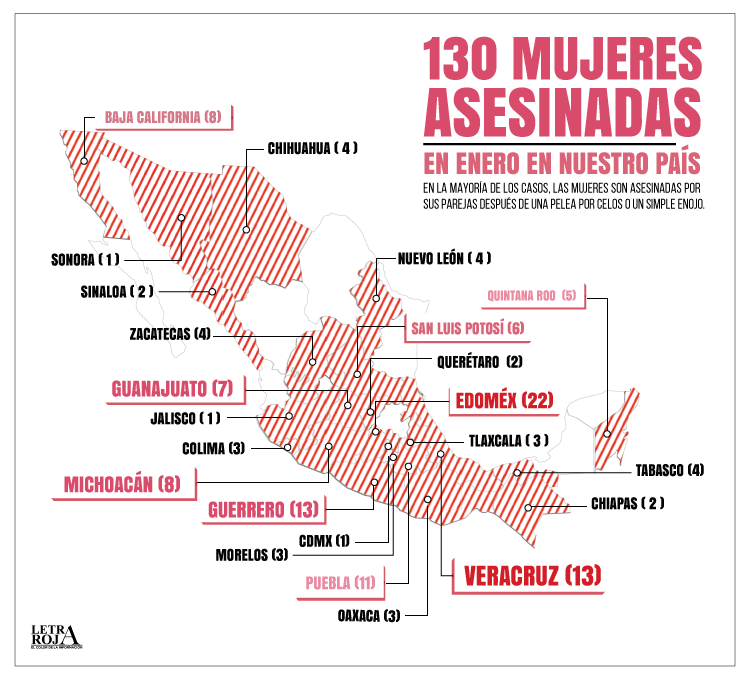 En la mayoría de los casos, las mujeres son asesinadas por sus parejas después de una pelea por celos o un simple enojo. Es por eso que hoy en Letra Roja te presenta cada uno de los casos: