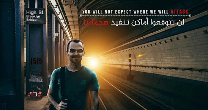 Las escalofriantes imágenes han sido divulgadas recientemente a través de una de las plataformas del grupo extremista. En una de estos carteles, que apunta contra EU, se ve a un hombre con sonrisa aviesa, aparentemente un yihadista, caminando por una estación del metro de Nueva York mientras a sus espaldas se ve unos explosivos con un temporizador.