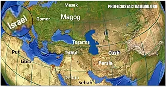 En esta Guerra los aliados están claramente identificados y provienen del Norte y el Sur de Israel: Rusia y los árabes junto a los Africanos.  Rusia en quien comanda el ataque contra Israel.
