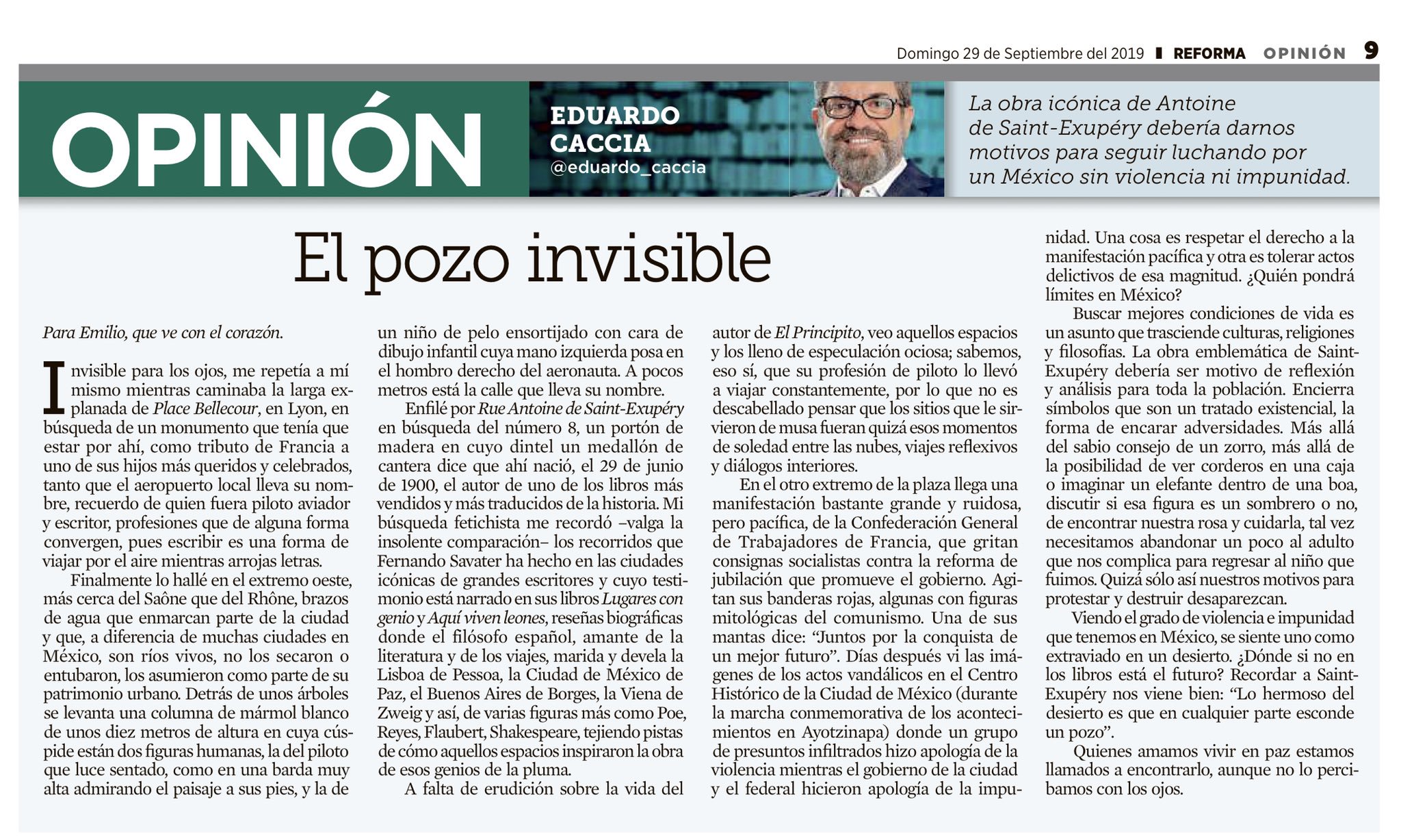 En ese sentido, el articulista del diario Reforma, Eduardo Caccia, hace una comparación de la ciudad de Lyon, Francia, y las protestas que ahí se han efectuado, con los hechos violentos que se presentaron durante la marcha para conmemorar el quinto aniversario de la desaparición de los 43 normalistas de Ayotzinapa.