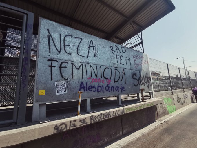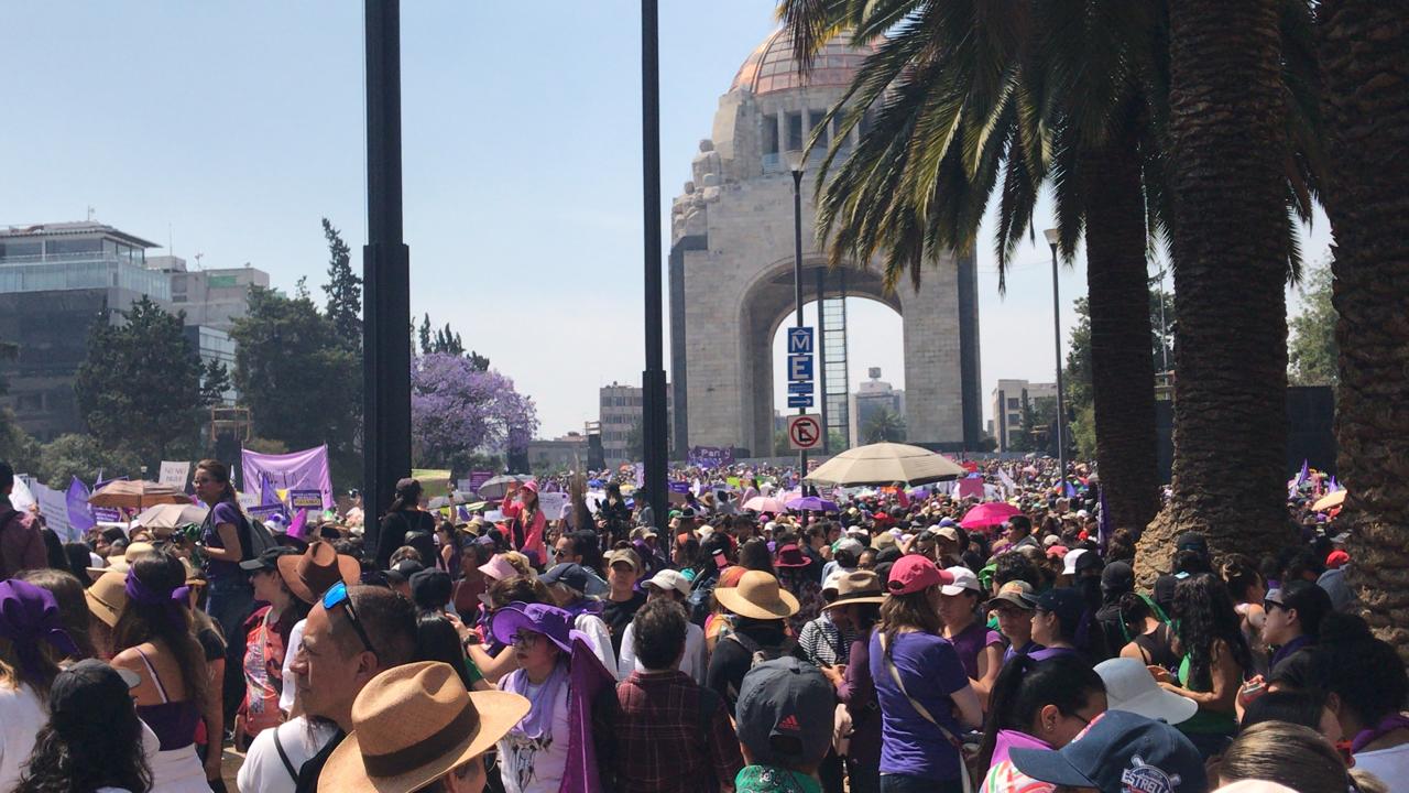 Gran representación de mujeres en las Torres de Satélite #Naucalpan como parte de las manifestaciones del #8M2020 #Marcha8M #SeVaACaer #NiUnaMenos