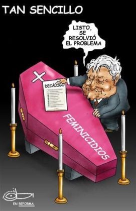 Debido a ello, los artistas de la caricatura no dudaron en dedicarle a Andrés Manuel unos cuantos trazos y retrataron su indiferencia hacia un problema social que está matando a las mexicanas.