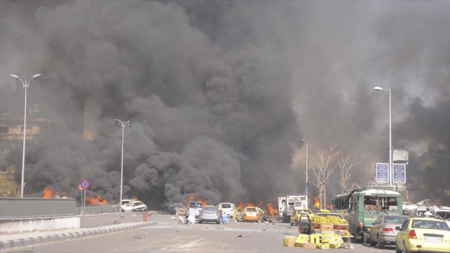 • Una explosión en el centro de Damasco, capital de Siria. (Foto: SANA)