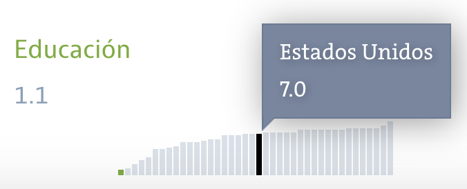 Tan solo hay que comparar algunos temas con EU, donde México penosamente se encuentra muy por debajo. Cabe señalar que dichos puntos son de una escala de 0 a 10.