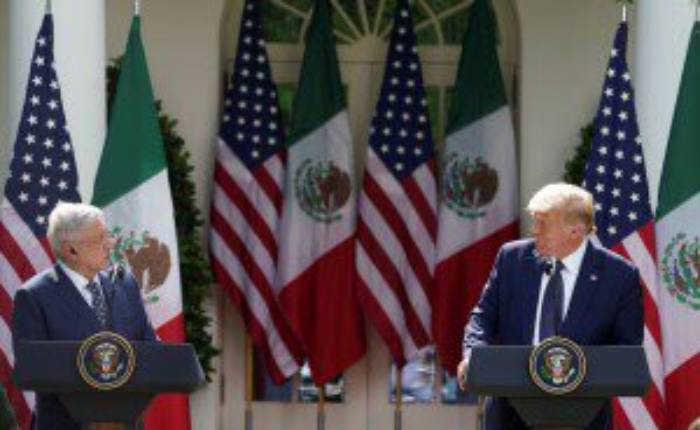 México. La tarde de esté miércoles, usuarios de redes sociales ponen en tendencia #AMLORidículoNacional por el hecho de que el presidente Andrés Manuel López Obrador (AMLO); agradeció en su discurso el trato brindado por su homólogo de Estados Unidos Donald Trump, en su visita a la Casa Blanca.