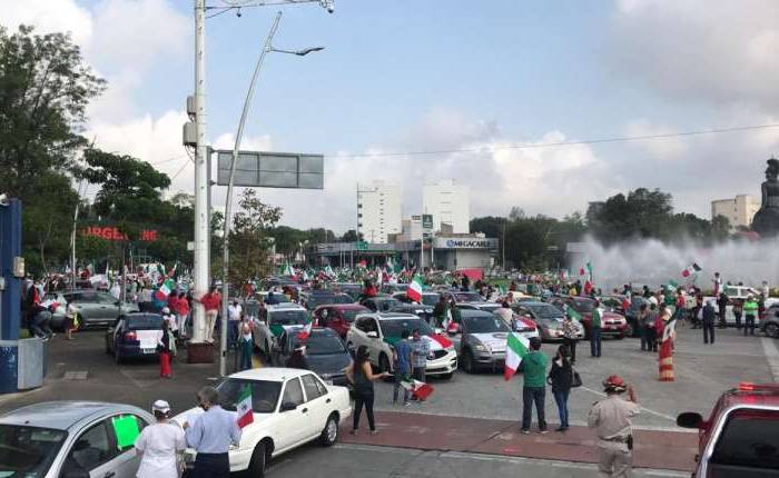 Alrededor de 400 vehículos y mil personas se dieron cita en la Glorieta Minerva, en dicha entidad, para protestar en contra del mandatario tabasqueño. Los asistentes fueron convocados por el Frente Nacional Anti AMLO.