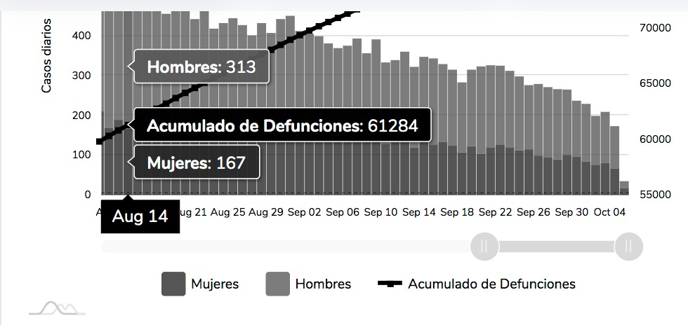 Por otra parte, la epidemia de coronavirus en México sigue en aumento. El 14 de agosto, día en que Molina pidió a AMLO usar cubrebocas, se reportaban 61 mil 285 muertes por Covid-19; ahora, hasta el corte de este martes, van 82 mil 348.