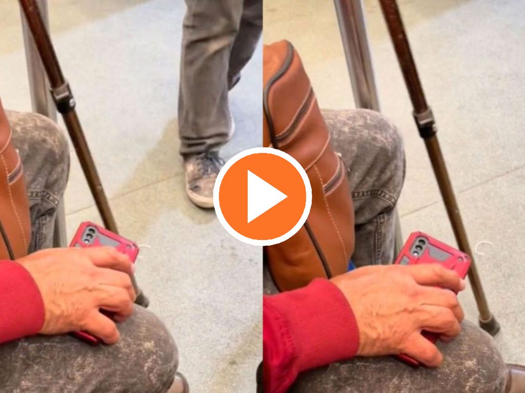 A través de TikTok, se viralizó el momento en el que el pasajero, sentado en un lugar frente a la puerta del vagón, usó la punta de su bastón para golpear algo que se encontraba en el suelo.