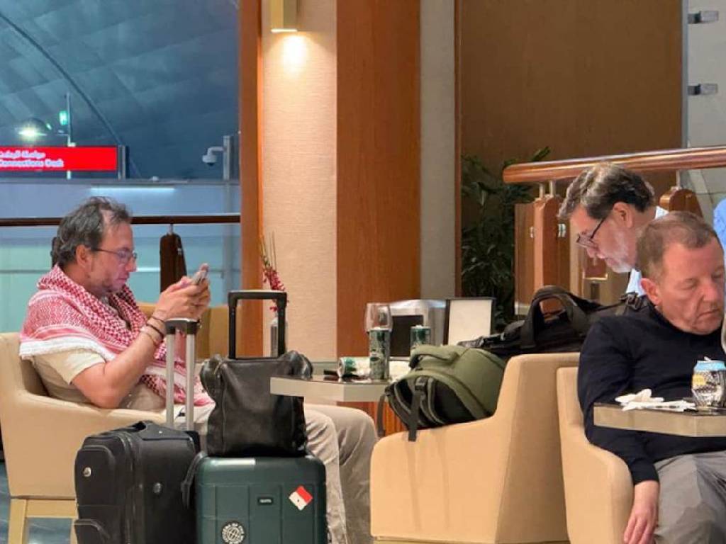 Fue el periodista Irving Pineda quien compartió las nuevas imágenes de Noroña dentro de la exlusiva sala del Aeropuerto Internacional de Dubai, en Emiratos Árabes Unidos.